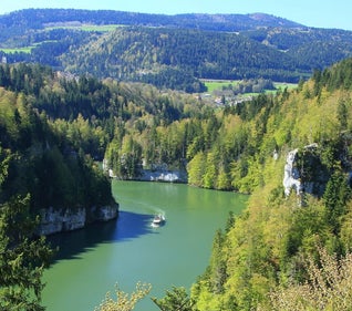 Impossible de visiter la région sans faire de halte à Baume-les-Messieurs ! Niché au creux d’une reculée spectaculaire, ce petit village de 200 âmes est l’un des bijoux patrimoniaux du Jura. Attardez-vous dans ses ruelles et son abbaye, avant de prendre le chemin de la cascade de tuf et des grottes aux dimensions de cathédrale.
